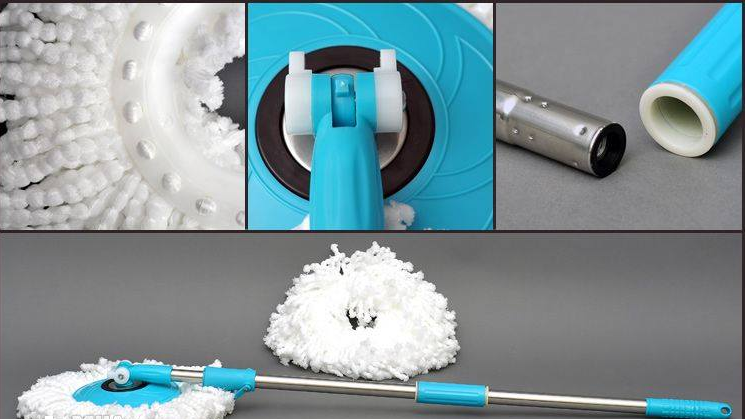 – Sản phẩm được thiết kế 3 bộ phận cơ bản gồm 1 thùng chứa nước, 1 thân cây lau nhà, 1 đầu lau, 2 bông lau.