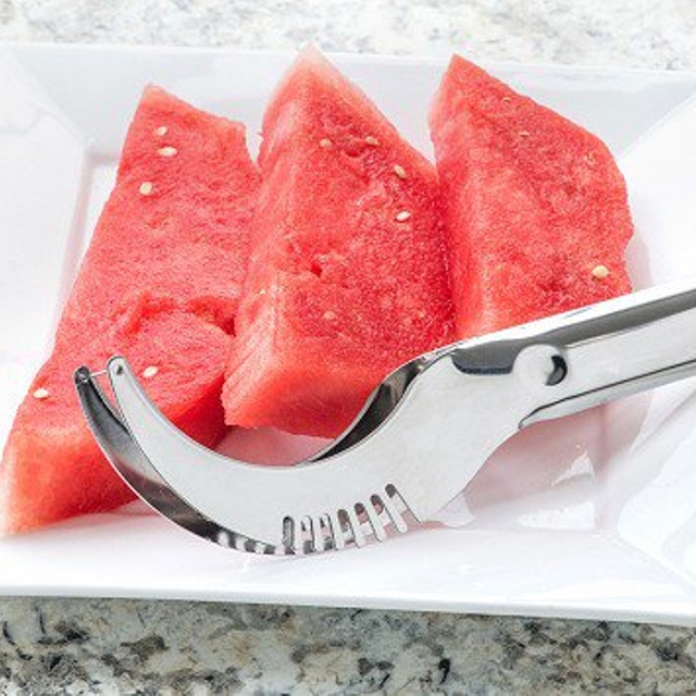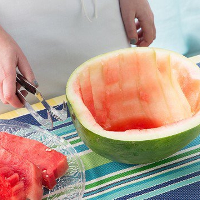 Thiết kế đơn giản, chỉ với vài nhát cắt, các bạn sẽ có 1 đĩa dưa hấu ngon tuyệt cho cả gia đình mà chỉ mất khoảng 2 phút.
