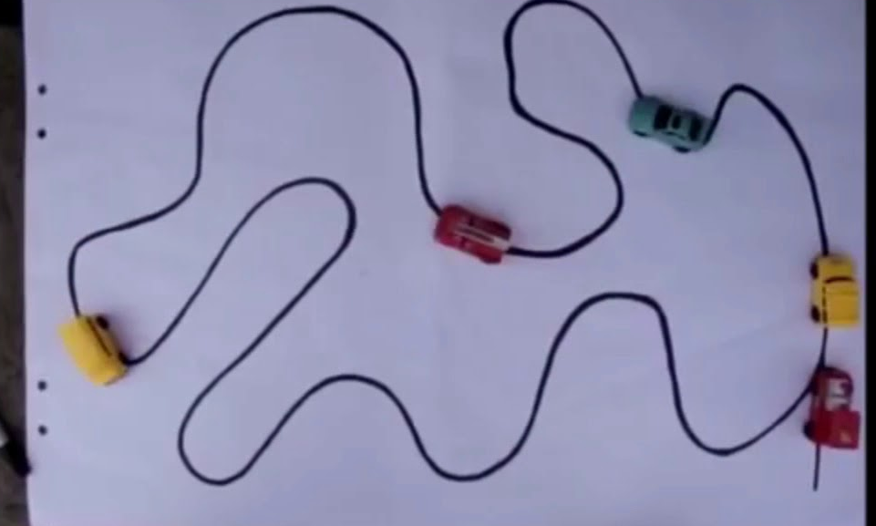 – Cực hay nhé! Vẽ đến đâu ô tô chạy theo đến đó. Nó có 1 bộ cảm ứng khá nhạy, sẽ dò tìm đường đi theo nét vẽ trên giấy. Các bé thỏa sức sáng tạo ra những cung đường cực hiểm để chạy xe. Món này thì đến bố mẹ cũng còn mê nữa là.